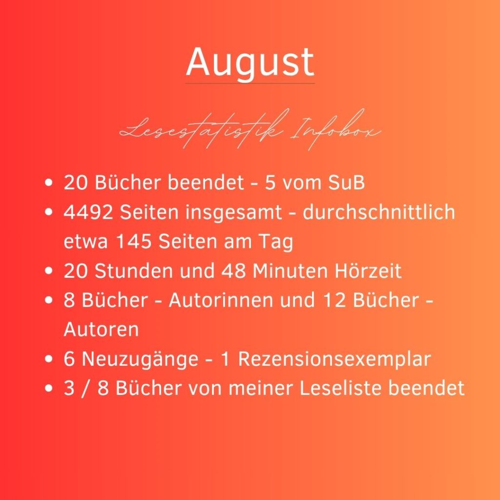 Dann habe ich noch 5 Bücher beendet, ja ich hatte halt Zeit im August. 😀
