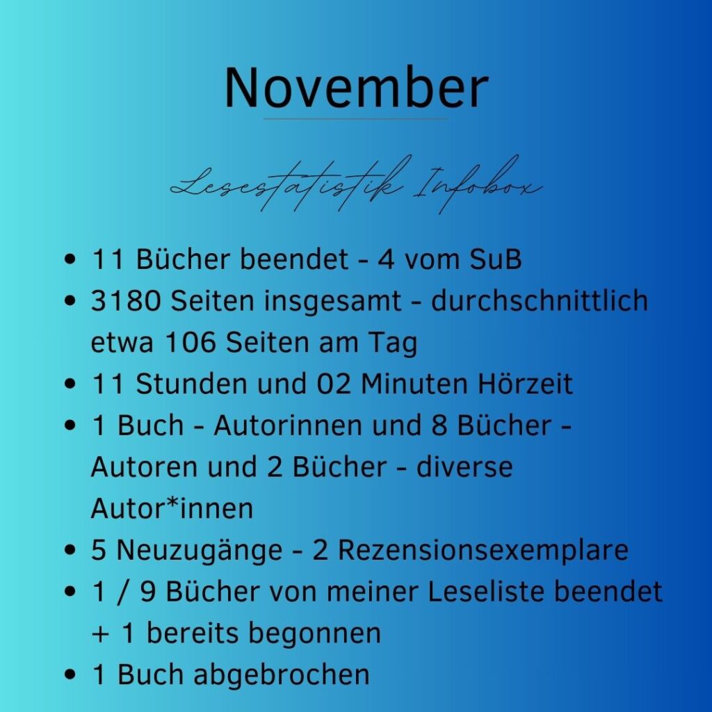 Ich wünsche euch einen lesereichen nächsten Monat!