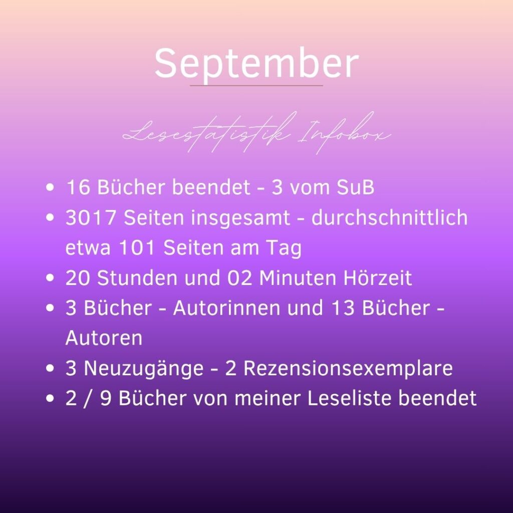 Ich wünsche euch einen lesereichen nächsten Monat!